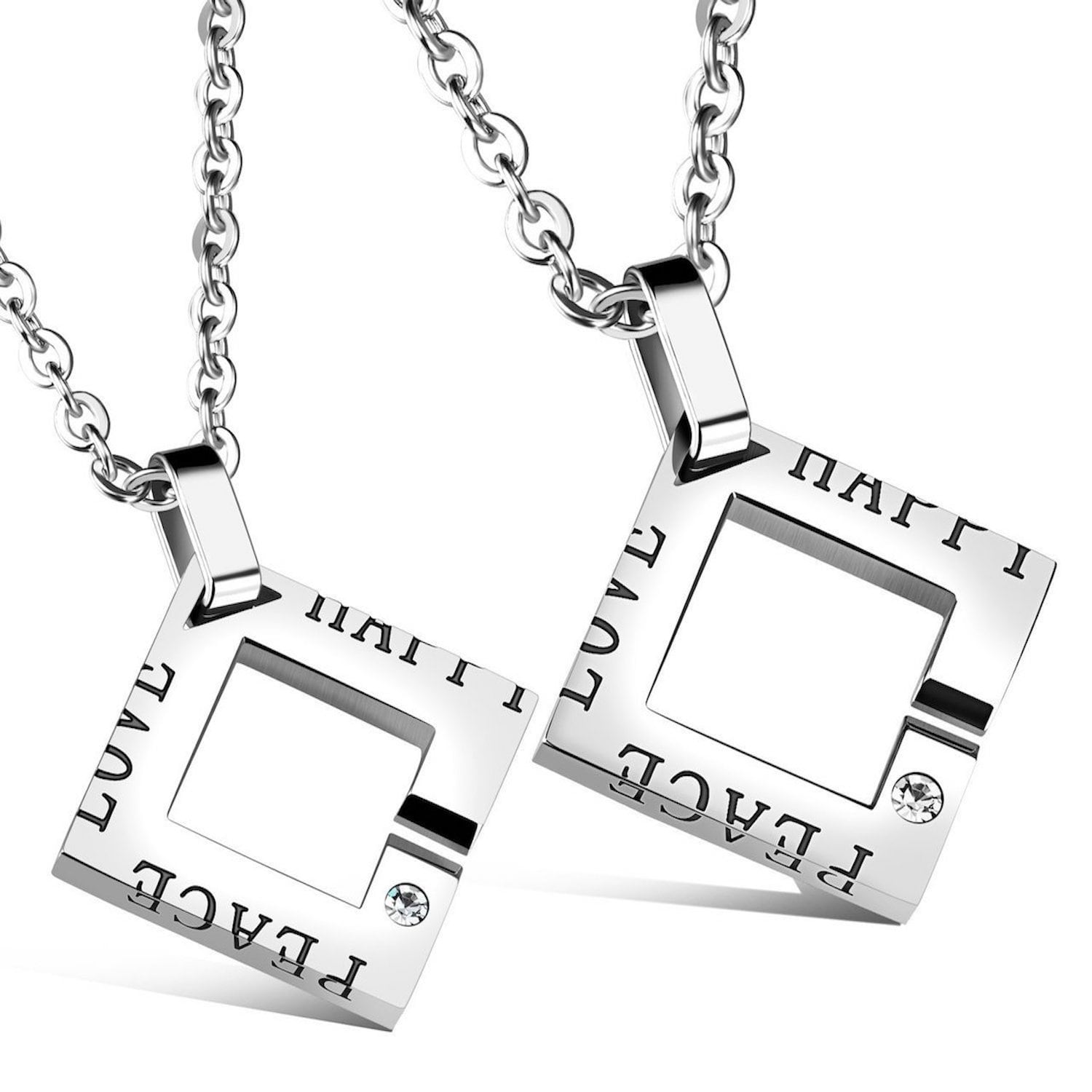【☆ペアアクセサリー工房☆】【2点セット】ペアネックレス ペンダント ステンレス製 人気 ブランド メンズ シルバー プレゼント ジュエリーポーチ(各1個) 付き