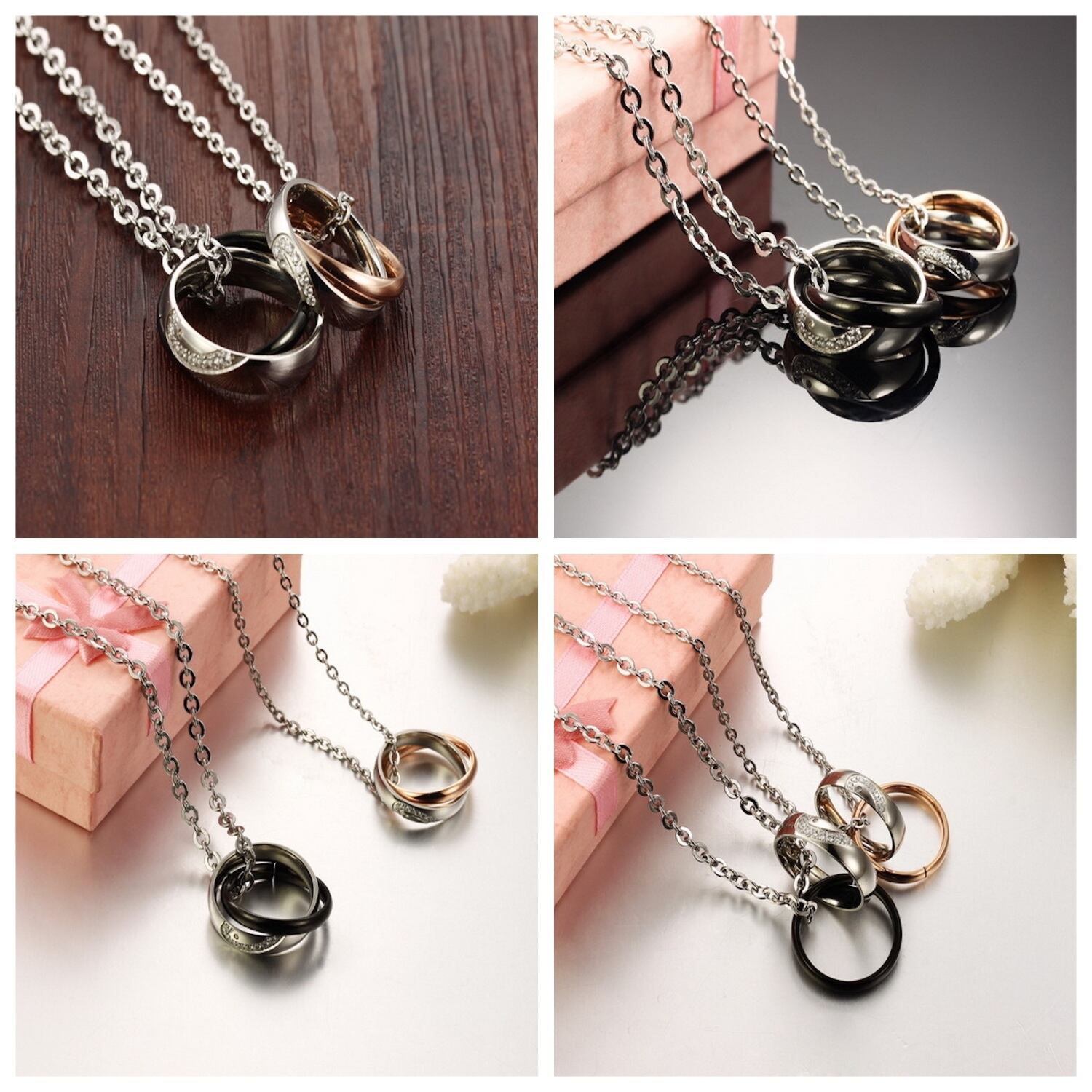 【☆ペアアクセサリー工房☆】【2点セット】カップル 二連リングネックレス ハート ペア ペンダント 恋人 CZジルコニア サージカルステンレス316L製