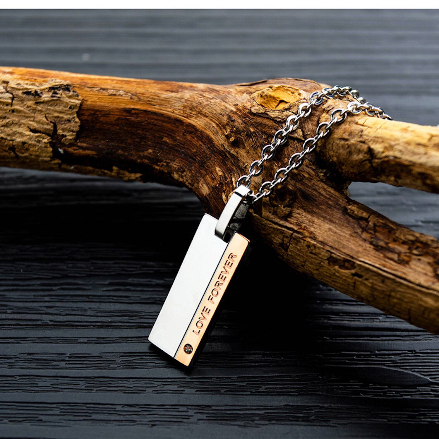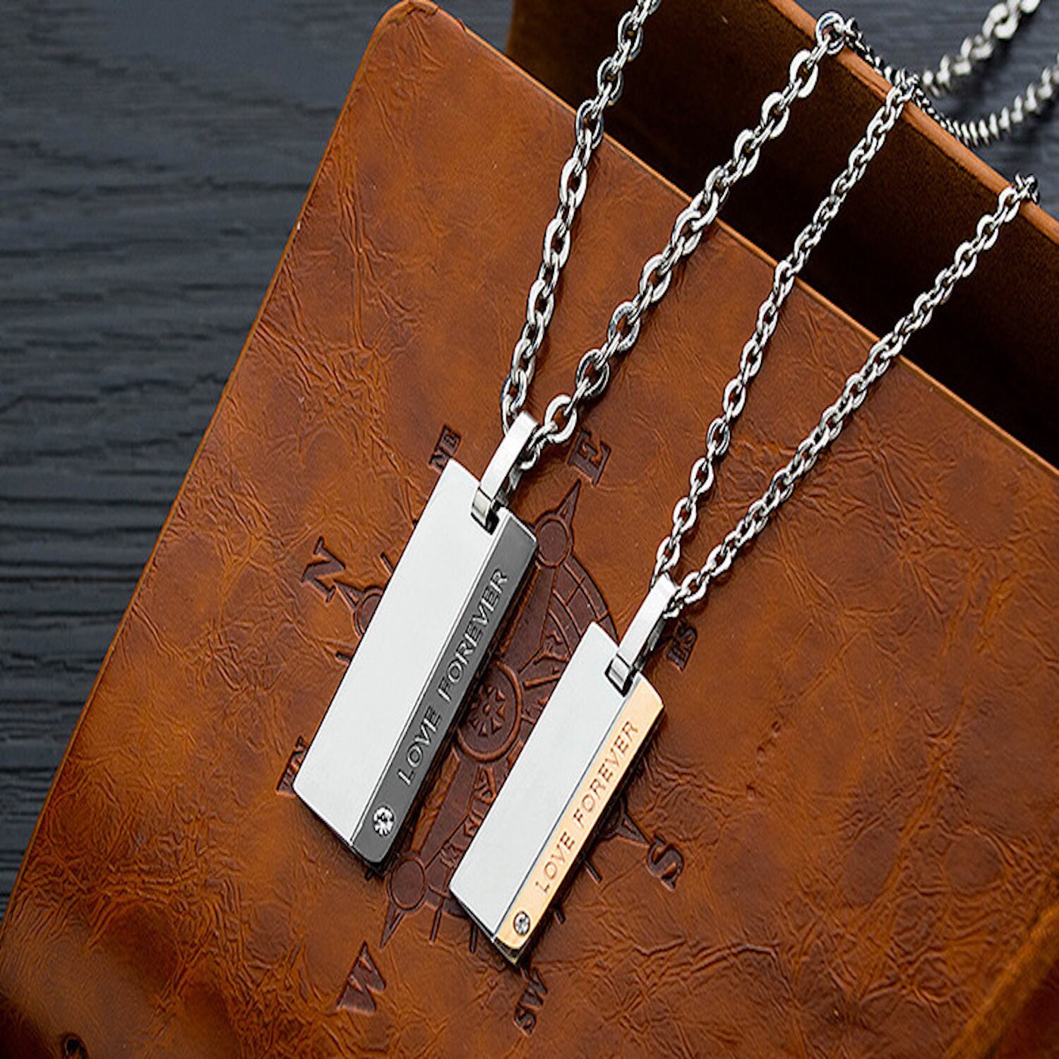 【正規品】【☆ペアアクセサリー工房☆】【2点セット】カップル ペアネックレス 「LOVE FOREVER」ステンレス ブラック&ゴールド 記念日 ジュエリーポーチ付き