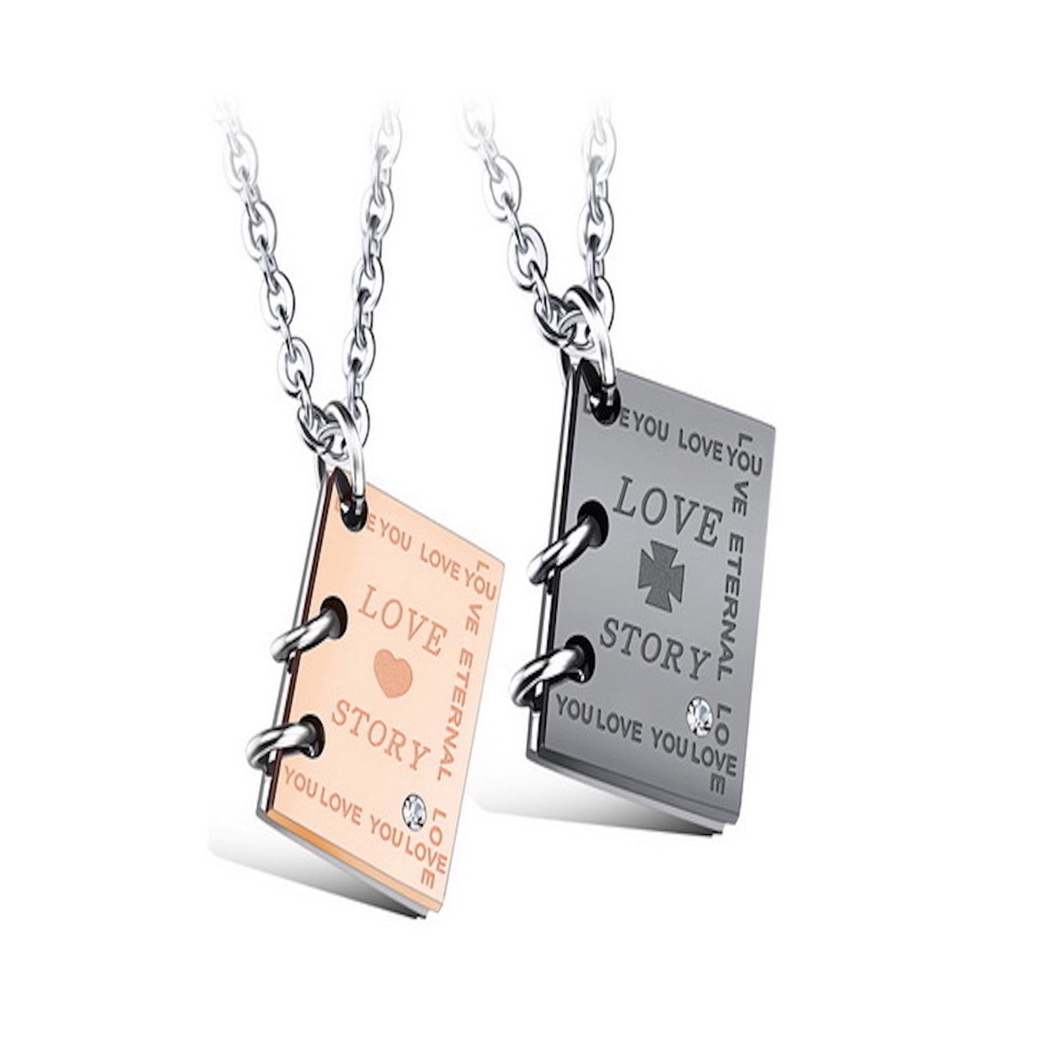 【☆ペアアクセサリー工房☆】ステンレス製 ペアネックレス セットカップル CZキュービックジルコニア 恋人 刻印「 Love Story( ラブレター )」メンズ レディース ペンダント 人気アクセサリー お揃い ネックレス お揃いのネックレスやブレスレットなどおしゃれなペア専門店 PEACEYA
