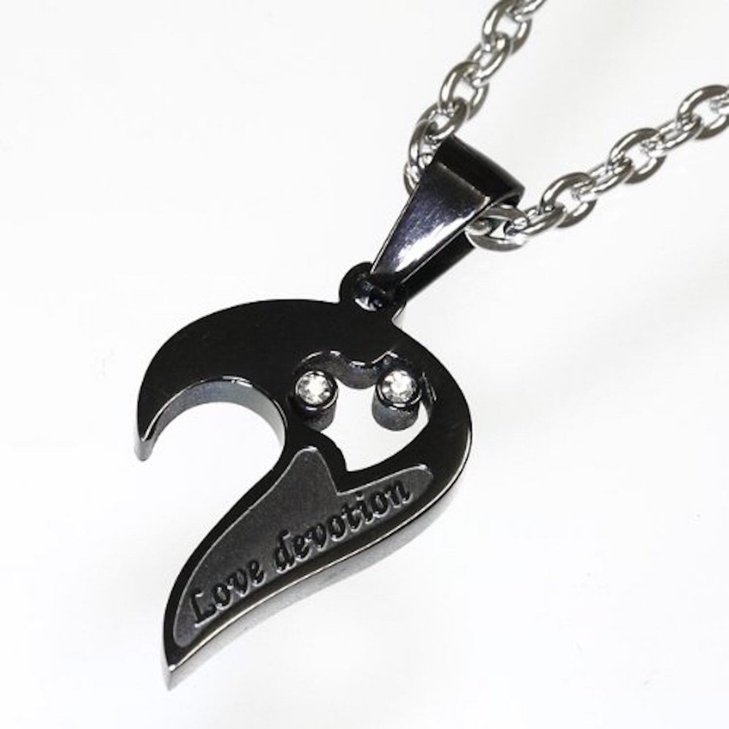 【☆ペアアクセサリー工房☆】ペア ネックレスカップル ハート 刻印 Love devotion ステンレスメンズ レディースペンダント アクセサリー ジュエリー (ペア)(シルバーと黒いステンレス) ジュエリーポーチ(各1個)付き お揃い プレゼント お揃いのネックレスやブレスレットなどおしゃれなペア専門店 PEACEYA